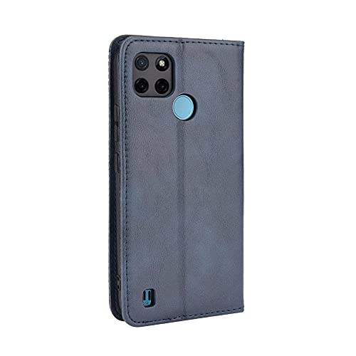 YIKLA Cover per Realme C21Y/Realme C25Y, Premium PU/TPU Pelle Folio Wallet Cover, con Slot per Schede, Chiusura Magnetica Flip Custodia - Blu