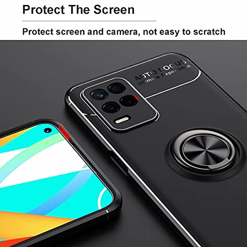 YIKLA Custodia per Oppo Realme 8 5G, Ultra Sottile Morbida TPU Silicone Antiurto Case, Metallo Anello Supporto 360 Grado Rotazione Ring Custodia, Rosso-Nero