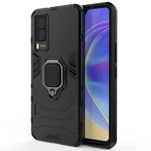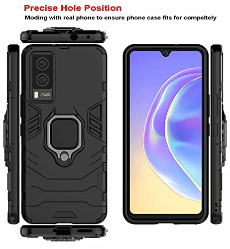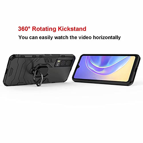 YIKLA Custodia per vivo V21e 5G, TPU/PC Antiurto Custodie con 360° Regolabile Anello Magnetica Supporto, Armor Bumper Protezione Case Caso - Nero