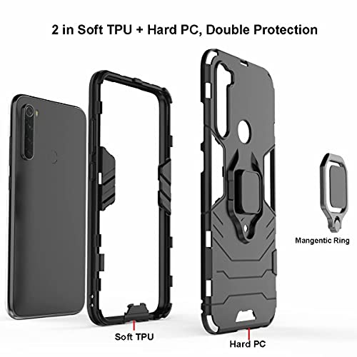 YIKLA Custodia per Xiaomi Redmi Note 8 2021, TPU/PC Antiurto Custodie con 360° Regolabile Anello Magnetica Supporto, Armor Bumper Protezione Case Caso - Blu