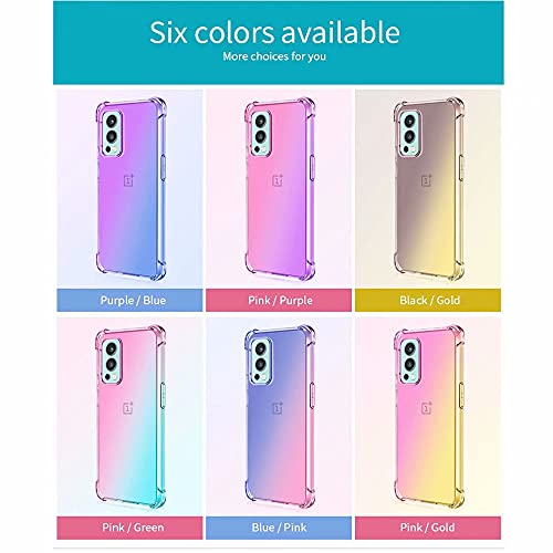 YIKLA Gradiente Colori Custodia per OnePlus Nord 2 5G, Soft Trasparente Silicone TPU Protettiva Case, Bumper Antiurto Protezione Shell, Blu/Rosa