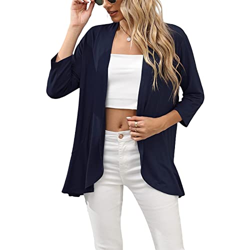 YILEEGOO Cardigan kimono casual per donna estivo leggero con volant a 3/4 manica aperta frontale Cove up Top, blu navy, L