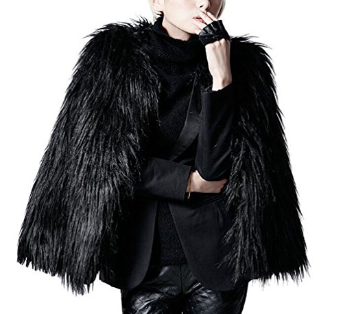 YiLianDa Moda Donna Corta Giacca Pelliccia Sintetica Cardigan per Autunno e Inverno Nero S