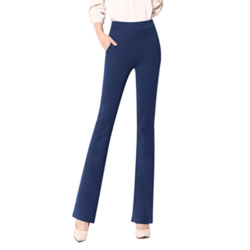 YiLianDa Pantaloni Zampa Elefante Donna Slim Fit Stretch OL Temperamento Ladies Pantaloni Blu S