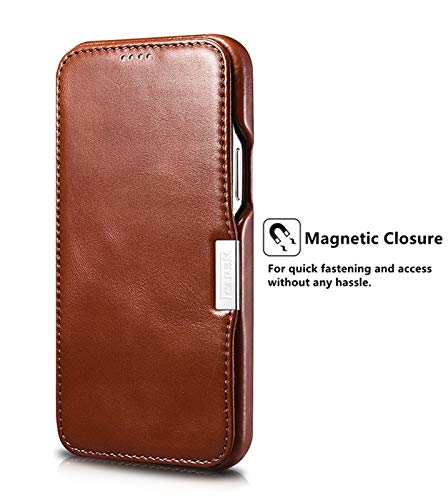 YiMi ICARER per iPhone 12 /iPhone 12 PRO Custodia, Premium in Vera Pelle Fatta a Mano Flip Vintage Stile Antiurto Anti-Caduta Completa Protettiva Custodia, Supporta la Ricarica Wireless (Marrone 1)