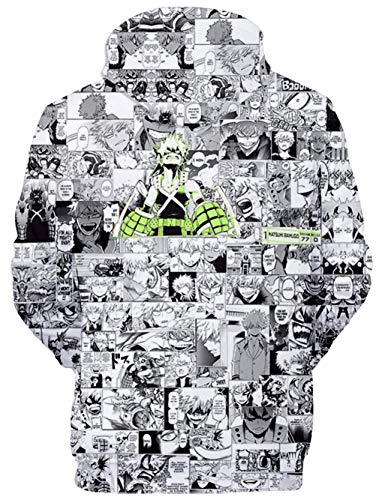 YIMIAO Ragazzi Ragazze 3D Stampato My Hero Academia Felpa con Cappuccio Maniche Lunghe con Tasca Japón Anime Uomo Hoodie(S)