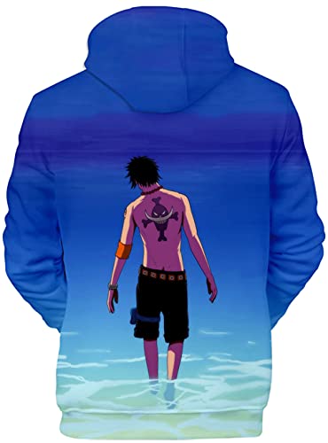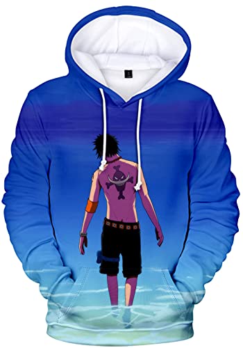 YIMIAO Unisex Moda Anime One Piece Felpe con Cappuccio 3D Sweatshirts Sweaters Tops per Uomo Donna Luffy Ace Pullover(XS)