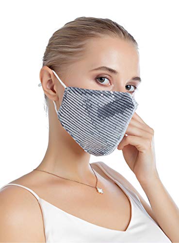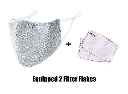 Yimidear Donna Mascherine Antipolvere con Paillettes di Lusso con 2 Filtro al Carbone Attivo, Riutilizzabile e Lavabile Maschere Viso per Corsa, Ciclismo e Attività all'aperto (Argento)