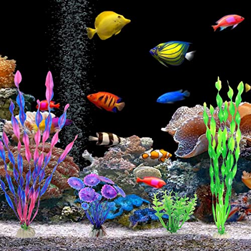 5. Colori vivaci: rinvigorisci l'arredamento dell'acquario con piante artificiali dai colori vivaci, aggiungi un tocco di colore audace per illuminare il paesaggio dell'acquario. L'ornamento realistico delle piante acquatiche ti dà sensazioni di piante acquatiche con l'acqua che scorre.