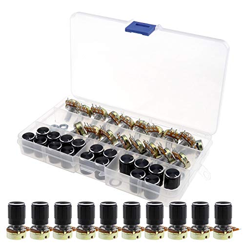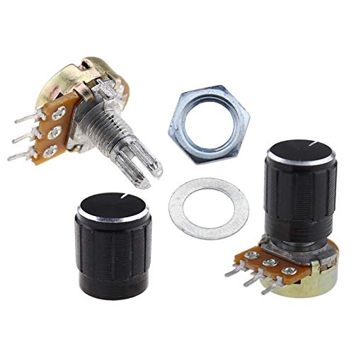 Potenziometro conico rotativo lineare con albero zigrinato B10K Ohm con dadi, rondelle e tappi.