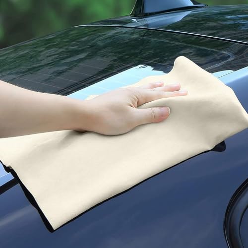 YINGLUOEU 2PCS Pelle di Daino per Auto Vera Pelle di Daino Naturale Moto Panni Asciugatura Auto Professionale per Pulizia Vetri Auto Panno