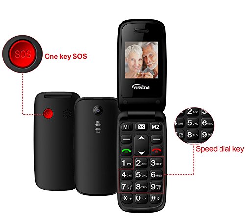 YINGTAI T15 2G Telefono Cellulare a Conchiglia con Tasti Grandi per Anziani Pulsante SOS per Chiamate di Emergenza
