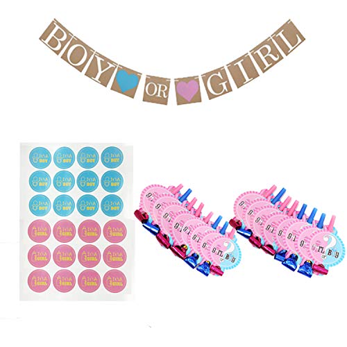 La confezione include: 1 striscione "Boy or Girl", 1 tracolla mummia to be, 1 palloncini neri rotondi (91,4 cm), 1 confezione di coriandoli blu, 1 confezione di coriandoli rosa, 2 palloncini rotondi in lamina (45,7 cm), 20 palloncini di genere rivelano (30,5 cm), 30 accessori per cabina fotogra, 12 team boy e 12 adesivi per ragazze di squadra, 1 6 ragazzo o ragazza 6 ragazzo drago soffiante, 16 bandiere per torte, 4 rotoli di corda colorata