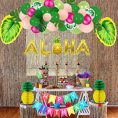 Yingzhou Confezione di decorazioni hawaiane tropicali per feste, set di forniture hawaiane con scritta "Happy Birthday e Aloha Banner, decorazione di ananas, tovaglia e palloncini per feste hawaiane