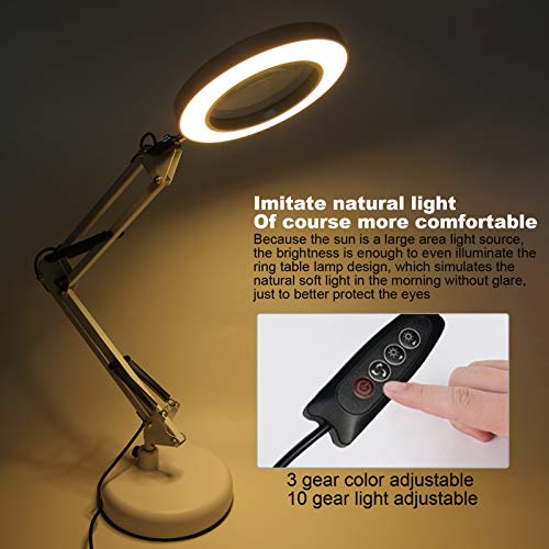 Yinhing Lampada da lettura da tavolo da scrivania, lampada da tatuaggio di bellezza, chip LED con lente d'ingrandimento 5X con interfaccia USB 3000-6000K per uso di tatuaggi per manicure