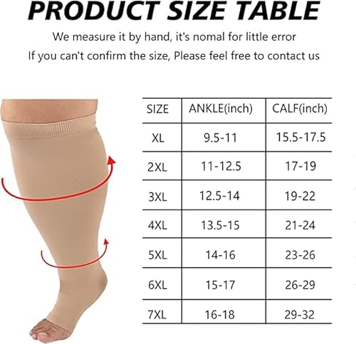 Yinitoo Calzino a compressione per uomini e donne, taglie forti Calze a Compressione da Running, Compressione Graduata, Fascia Polpacci Compressione per Vene Varicose,Gonfiore,Edema XL-7XL (7XL)