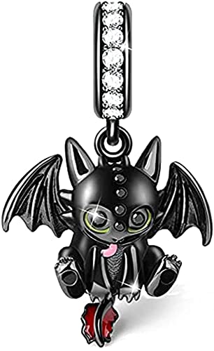 Yinitoo Charm Ciondolo Drago Combatti per la patria Charm Bead e Cubic Zirconia,Placcato Nero Per Bracciali e Collana Regalo per Moglie Donne