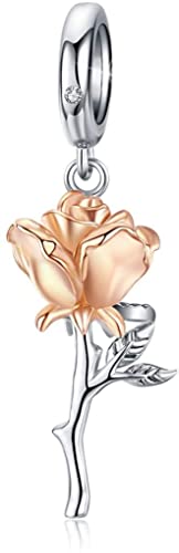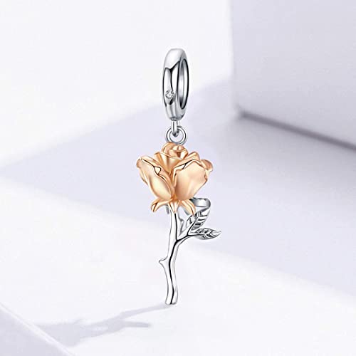 Yinitoo Charm 3D pendente a forma di rosa, in argento sterling 925, placcato oro rosa, compatibile con braccialetti e collane Pandora