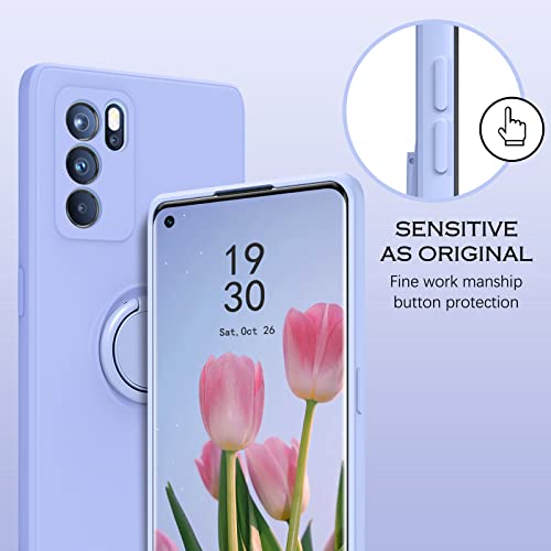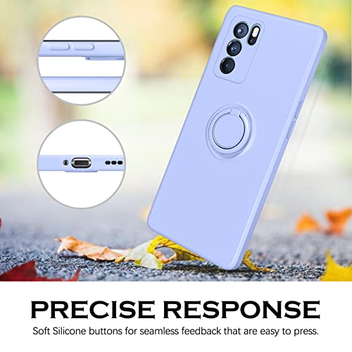 YINLAI Custodia per Oppo Reno6 Pro 5G Gomma Liquido con 360° Ring Stand Custodia Oppo Reno 6 Pro Custodia Silicone Antiurto Bumper Cover per Oppo Reno6 Pro 5G - Viola Lavanda