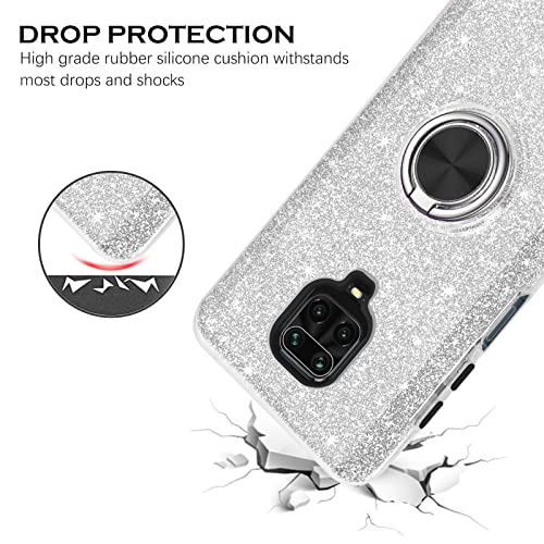 YINLAI Custodia per Xiaomi Redmi Note 9 Pro, Redmi Note 9S, con glitter e supporto ad anello a 360°, per Xiaomi Redmi Note 9S/Note 9 Pro/Note 9 Pro Max, argento nero