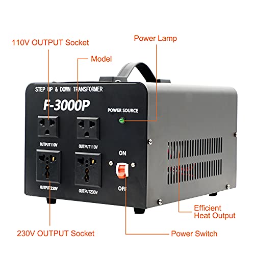 Yinleader Trasformatore di tensione da 3000 VA a anima ad anello, passo up/step down Converter, convertitore di tensione da 3000 W, 110 V a 230 V/230 a 110 V