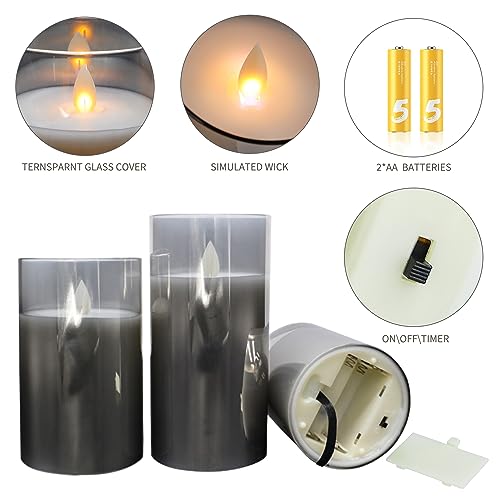 Yinuo Mirror Candela Led con Fiamma Tremolante, Candeline, Set di Candele Elettriche a Fiamma Mobile a Colonna di Cera Reale, Effetto Vetro Dorato Con Timer Remoto