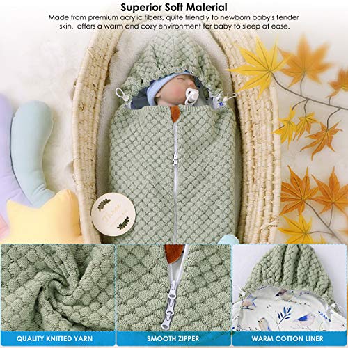 Materiale morbido superiore - Realizzato con fibre acriliche di alta qualità, delicatamente lavorato a maglia e orlato, morbido e confortevole al tatto, abbastanza amichevole per la pelle tenera del neonato, offre un ambiente caldo e accogliente per far dormire il bambino a proprio agio.
