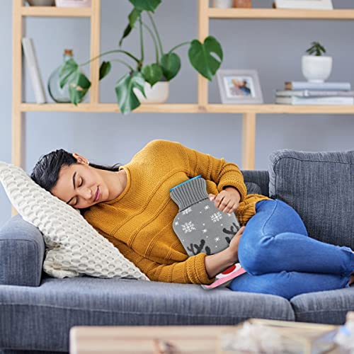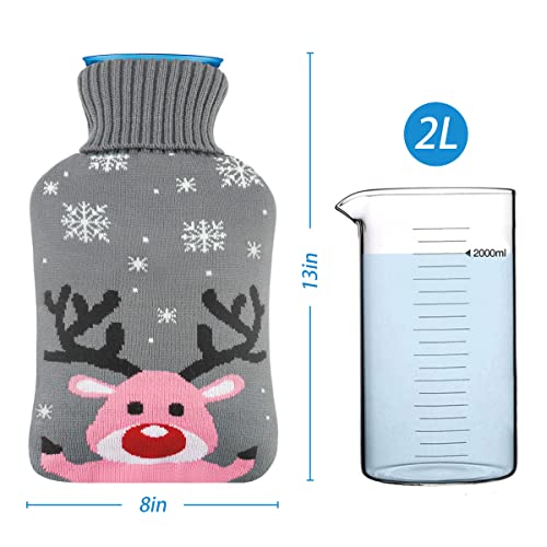 Yinzou Borsa Dell'acqua Calda, Borsa per l'acqua Calda con Giacca a Maglia, Bottiglia di Acqua Calda Per Crampi E Sollievo Dal Dolore, Hot Water Bottle Rimovibile e Lavabile, 2 Litri (Cervo)