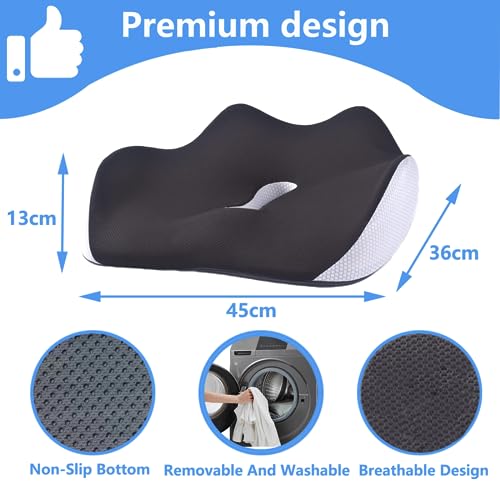 YIOUMLY Cuscino Sedile Ortopedico Schiuma a Memoria, Cuscino Ergonomico Sedia Ufficio Realizzato, Allevia il Dolore Della e Coccige Sciatica, Maggiore Comfort del Sedile, per Sedia da Ufficio (Nero)
