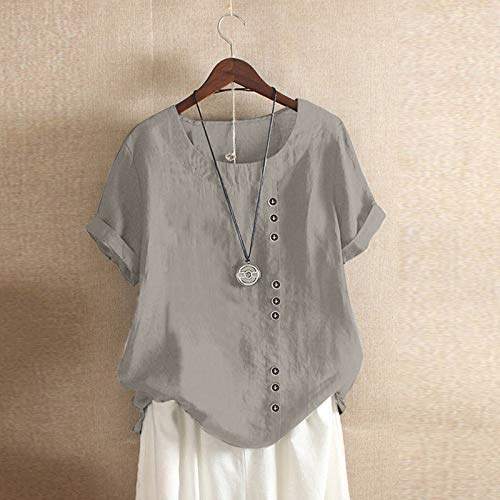 Yiouyisheng Maglia da donna in cotone e lino, camicetta estiva da donna, a maniche corte, con scollo rotondo, casual, taglie S-XXXXXL