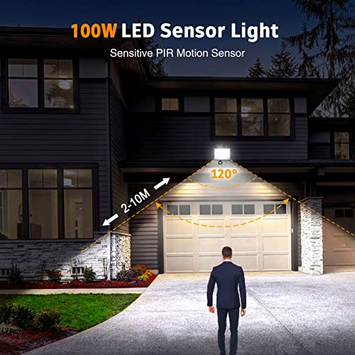 YIQIBRO 100W Faretto LED da Esterno con Sensore di Movimento, 2 in 1 Faro LED Esterno IP67 Impermeabile Faretti LED, 10000LM 7000K Bianco Freddo Luce di Sicurezza per Ingresso, Cortile, Garage, Patio