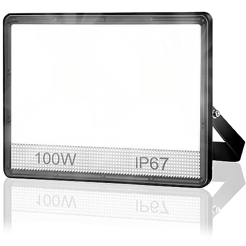 YIQIBRO Faretto LED da Esterno 100W, 2 in 1 Faro LED Esterno IP67 Impermeabile Faretti LED, 10000LM 7000K Super Luminoso Bianco Freddo Luce di Sicurezza per Giardino, Garage, Cortile, Ingresso, Patio