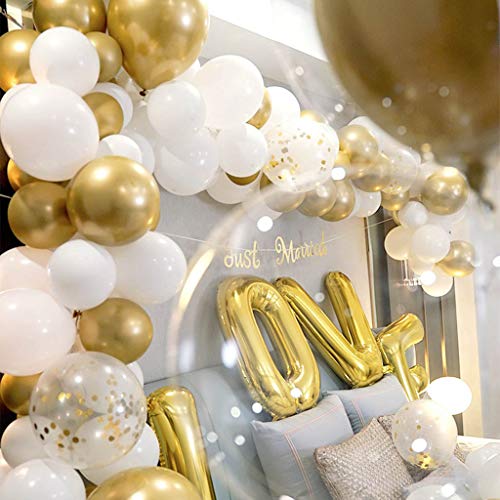 Yiran Palloncini dorati e bianchi - Confezione da 30 palloncini in lattice da 30,5 cm con coriandoli metallici con 1 nastro per feste di compleanno, matrimoni, anniversari e celebrazioni decorazioni