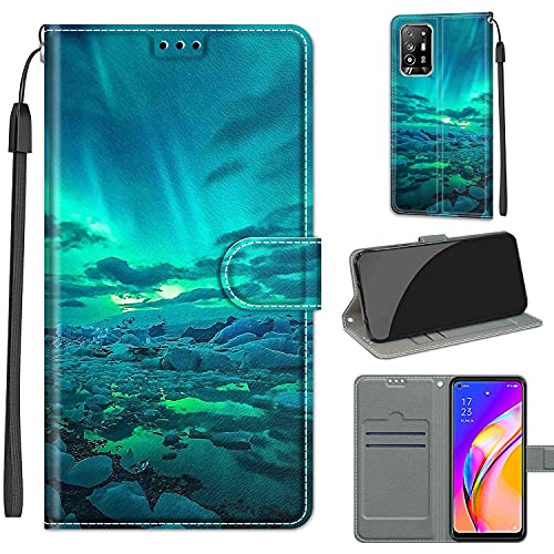 YIRRANZD Cover per Oppo A94 5G, Protettiva Portafoglio in Pelle PU Cover Libro [Verniciato], Flip Caso Antiurto Custodia per Oppo A94 5G (Aurora)