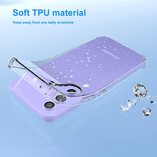 YIRSUR Cover per Samsung Galaxy A54 5G Glitter, con 3 Pezzi Vetro Temperato Pellicola Protettiva, Trasparente Glitter Custodia Protettiva Antiurto con Paraurti in TPU Morbida