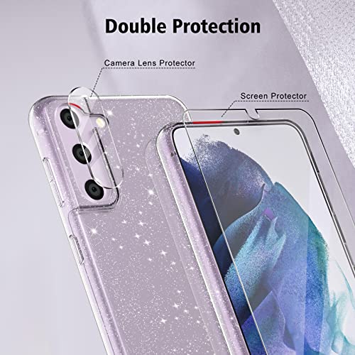 YIRSUR Cover per Samsung Galaxy S21 FE 5G,con 2 pezzi in Vetro Temperato e 2 Pezzi Protettore Lente Fotocamera, Trasparente Flessibile TPU Glitter Custodia Case Compatibile con Galaxy S21 FE 5G