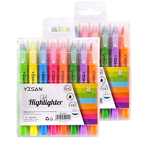 YISAN Evidenziatore gel, evidenziatore bibbia, pennarelli evidenziatore, anti sbavature, 8 colori assortiti (confezione da 2) 880612