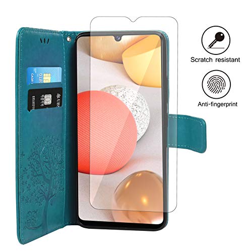 Yiscase Custodia per Samsung Galaxy A42 5G Custodia, Galaxy A42 5G, in pelle PU Flip Wallet + Pellicola Protettiva + Touch Pen per Samsung Galaxy A42 5G, Blu