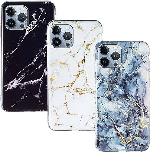 Yiscase 3 custodie in marmo compatibili con iPhone 15 Pro Max, cover in silicone TPU con glitter con motivo floreale marmo, ultra sottile e flessibile, colore nero + bianco + grigio