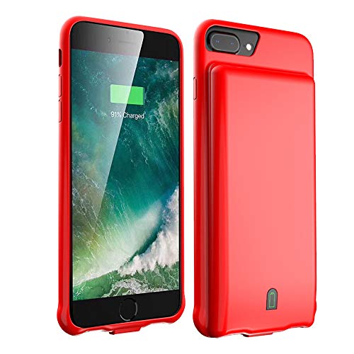 YISHDA - Custodia per batteria per iPhone 6 Plus/6S Plus/7 Plus/8 Plus, 7000 mAh, batteria prolungata, batteria ricaricabile, batteria di riserva di alimentazione portatile, supporto per cuffie da 5,5", colore: Rosso