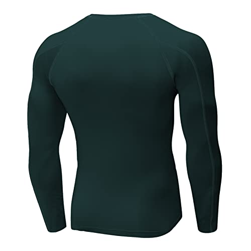 Yishengwan Maglietta a Compressione Uomo Magliette a Manica Lunga Palestra Maglia Traspirante Asciugatura Rapida per Corsa Ciclismo Fitness Verde Scuro XL