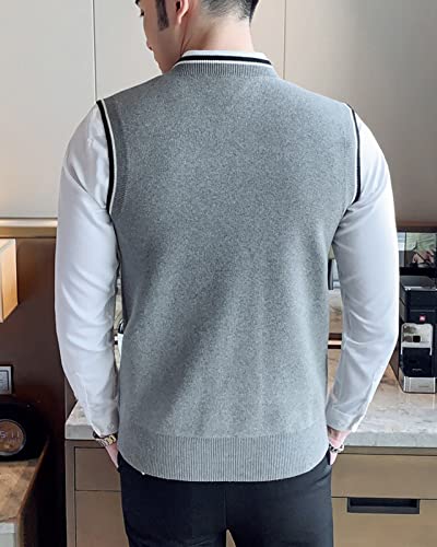 Yishengwan Uomo Scollo V Pullunder Smanicato Maglia Gilet Maglione Senza Maniche Vest Maglieria Pullover Grigio XS