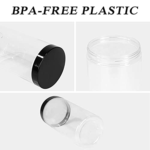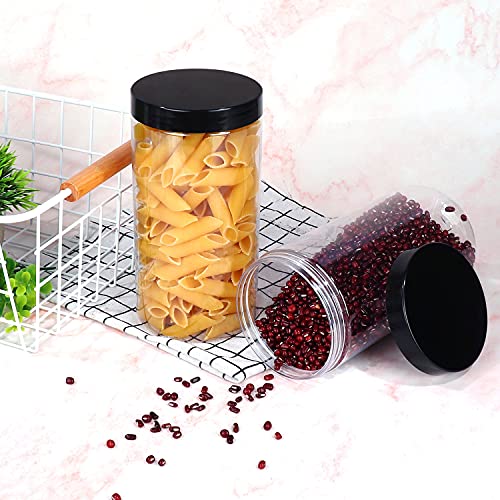 Yishik - Confezione da 6 barattoli rotondi in plastica da 1000 ml, con coperchio nero, per conservare pasta/fagioli/biscotti, per creare melma e fai da te (6 etichette incluse)