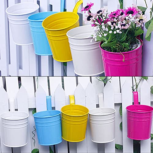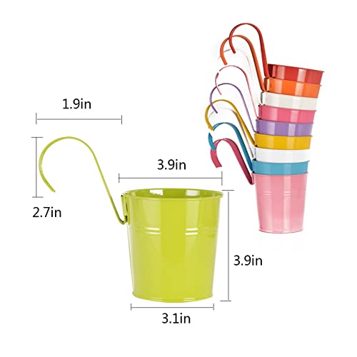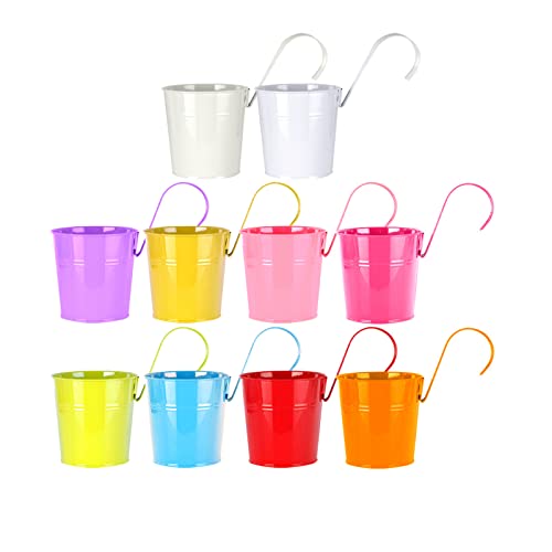 Yishik Set di 10 vasi da fiori da appendere in ferro con manico staccabile e foro di drenaggio in metallo per fioriera da appendere per balconi e giardino decorazione per la casa