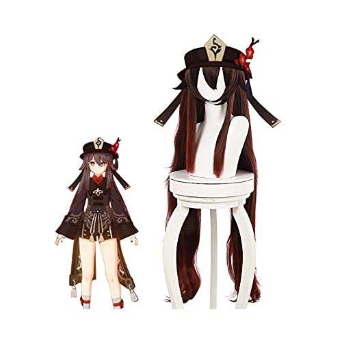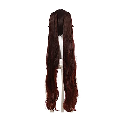 YiShuHua Parrucca di Coda a Doppio Cavallo in Noce con Gradiente, Genshin Impact Cosplay Outfit HU Tao Parrucca Cosplay Marrone Parrucca Nera per Feste (Color: Brown)