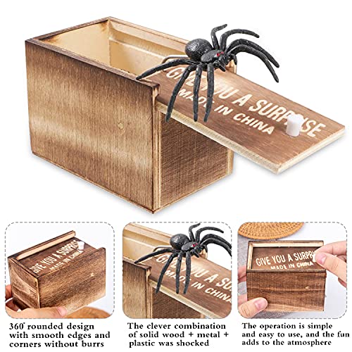 【FACILE DA UTILIZZARE】Materiale riutilizzabile e facile da resettare, non tossico, nessuna struttura affilata e robusta, con vivida ragno spaventoso realistico all'interno. ragno in scatola di legno salterà fuori quando si rimuove coperchio della scatola.