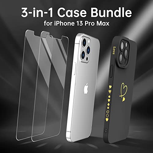 YisrLery Cover Compatibile con iPhone 13 Pro Max Custodia e 2 Pezzi Vetro Temperato, Motivo a Cuore Carino, Protezione Fotocamera Silicone Liquido Morbido Cover per iPhone 13 Pro Max 6.7" - Nero