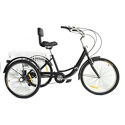 YISSALE Triciclo per adulti 24 Pollice 3 Bicicletta con Cestino e Luce 7 Marce Trike Bike Adatto Per Uomo Donna