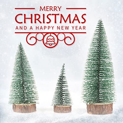 Yisscen 9 Pcs Mini Alberi di Natale, Albero di Natale con Base Legno, Albero di Natale Innevato Effetto Realistico Albero di Natale Artificiale, Albero di Natale in Miniatura Sisal Per Decorazione