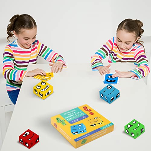 Yisscen Puzzle Legno, Espressione Puzzle di Legno Giochi Montessori, Cubo Giocattolo In Legno, Educativo Giocattolo In Legno, Puzzle Building Cubes Giochi Interattivo per Bambino 3+ Anni